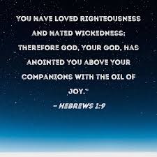 “You have loved righteousness and hated wickedness; therefore God, your God, has set you above your companions by anointing you with the oil of joy. Hebrews 1:9