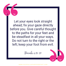 “Look straight ahead, and fix your eyes on what lies before you. Mark out a straight path for your feet; stay on the safe path. Don’t get sidetracked; keep your feet from following evil.”