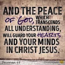 “Then you will experience God’s peace, which exceeds anything we can understand. His peace will guard your hearts and minds as you live in Christ Jesus.