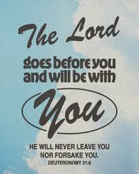 “Be strong and courageous. Do not be afraid or terrified because of them, for the Lord your God goes with you; he will never leave you nor forsake you.” Then Moses summoned Joshua and said to him in the presence of all Israel, “Be strong and courageous, for you must go with this people into the land that the Lord swore to their ancestors to give them, and you must divide it among them as their inheritance. The Lord himself goes before you and will be with you; he will never leave you nor forsake you. Do not be afraid; do not be discouraged.” Deuteronomy 31:6-8