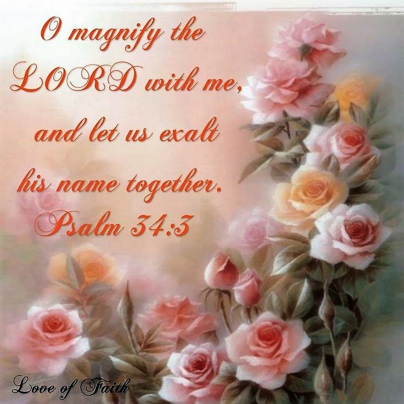 “O magnify the LORD with me, and let us exalt his name together. I sought the LORD, and he heard me and delivered me from all my fears. They looked unto him and were lightened, and their faces were not ashamed.” Psalms 34:3-5
