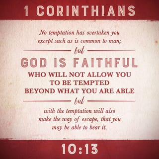 “No temptation has overtaken you except what is common to mankind. And God is faithful; he will not let you be tempted beyond what you can bear. But when you are tempted, he will also provide a way out so that you can endure it.”